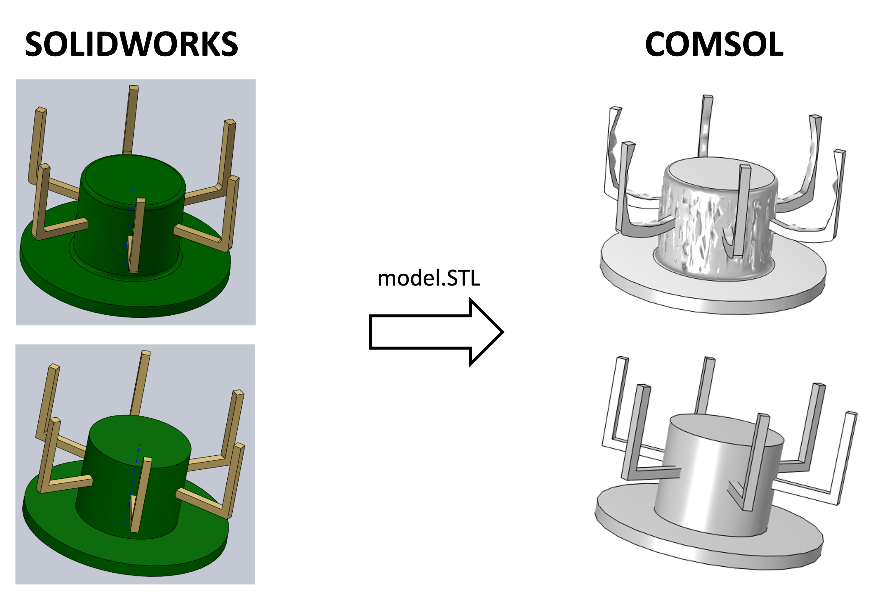 This is a common challenge encountered by mechanical engineers. As depicted in the illustration below, when transitioning a CAD model into simulation software, determining the success of the conversion can be challenging, especially for highly intricate parts that defy visual inspection.